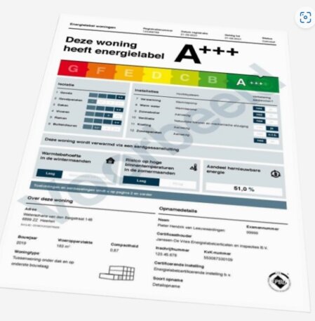 - Toekomstbestendig wonen & verduurzamen — Het energielabel geeft inzicht in hoe energiezuinig uw woning is én welke verbeteringen mogelijk zijn. Zo ziet u direct waar u kunt verduurzamen: van isolatie en dubbel glas tot zonnepanelen of warmtepomp.